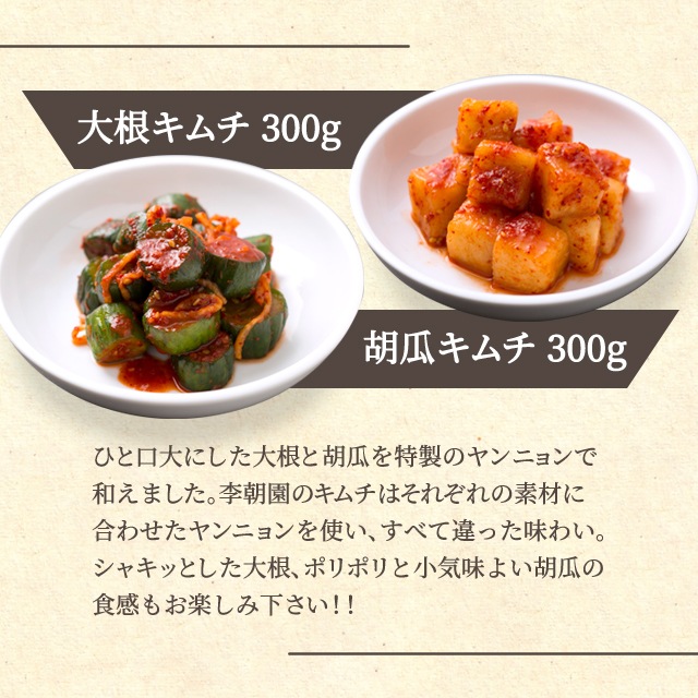 実店舗でも人気のキムチをセットにしました!李朝園直営店で人気のトップ5!