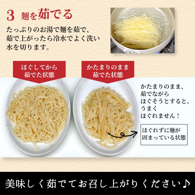 つるんとのど越しが良く、コシの強いもちもちの生麺は自社工場で作った自慢の麺です!
