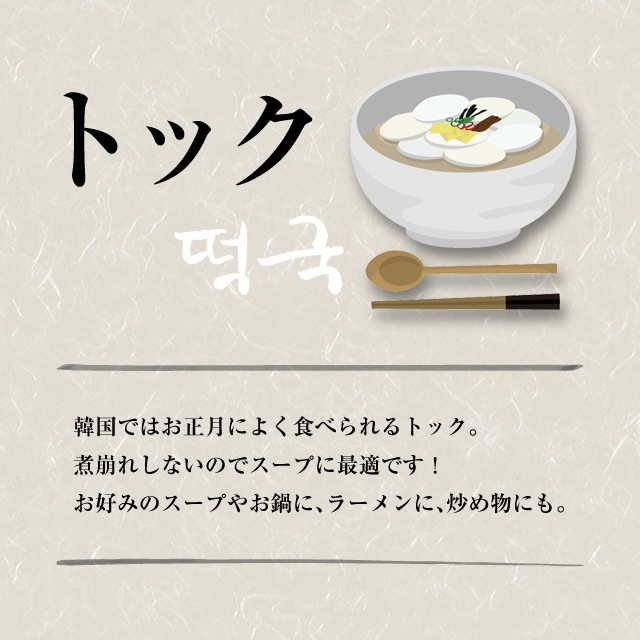 韓国式のお雑煮トックに使われる餅。