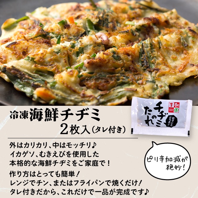 もちもちした美味しいチヂミをご家庭でお楽しみください。調理はレンジで3分!超簡単!