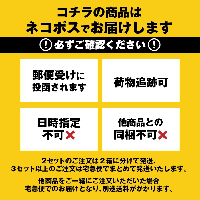 メール便商品2セットまでのご注文はふた口での発送、3セット以上のご注文は宅配便で1箱にまとめて発送いたします。